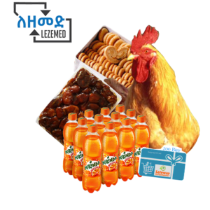 $81Read more1 Large Rooster(ዶሮ), 1 Kg Saro-Maria Hotel cookies , 1 Kg ቴምር, 1 pack 1/2 Liter Mirinda soft drink (12 Pieces) & 500 Birr Safeway shopping gift card
